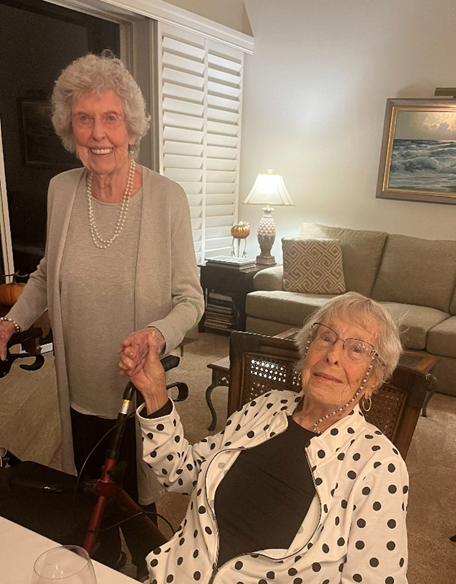 Guests at our Thanksgiving dinner party.  Margaret on the left looking ravishing at the age of 100, and Joan, looking great at 92. Joan continues her many years of volunteer work at the hospital, now driving a trolley around the parking lot giving rides to weary visitors.  We’re partners.