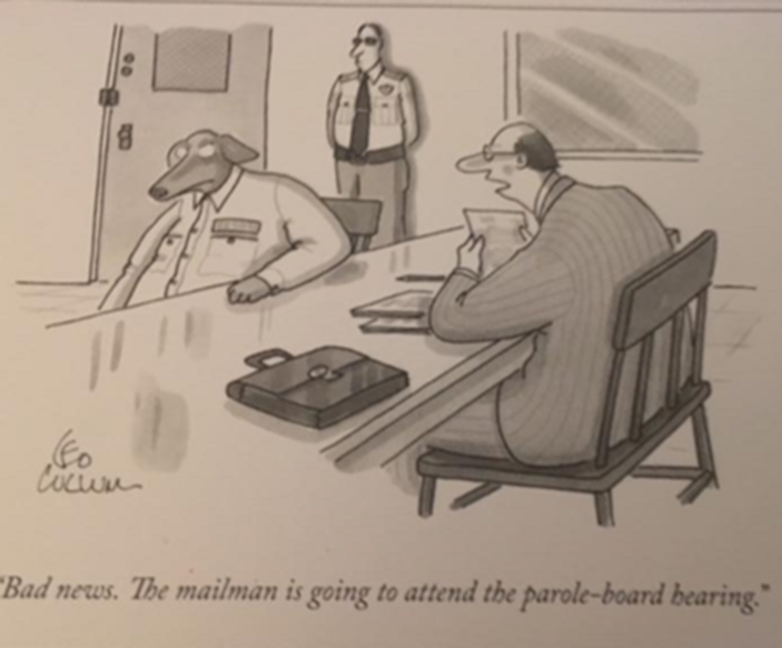 And more bad news. The mailman is going to attend the parole-board hearing.
