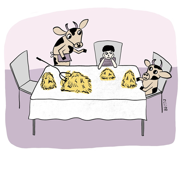Eat it – there are calves starving in the other barns